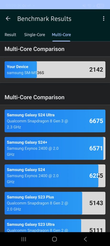 갤럭시m53 퀀텀3 일반모드 긱벤치6 결과