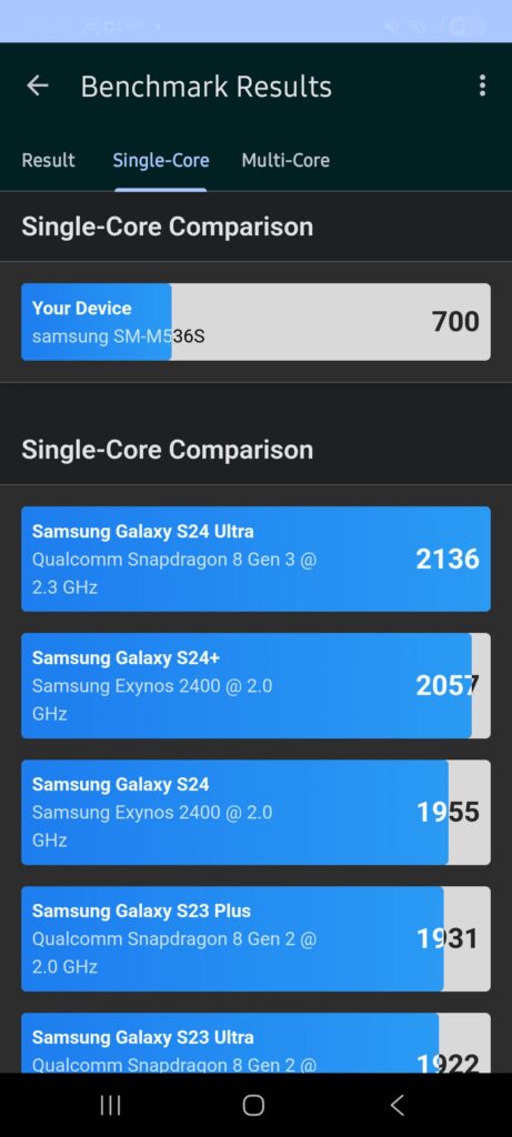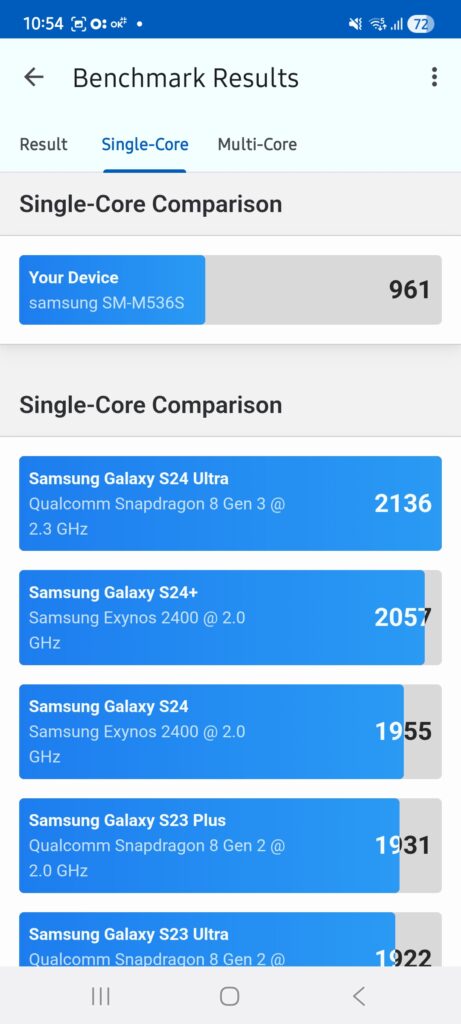 갤럭시m53 퀀텀3 일반모드 긱벤치6 결과