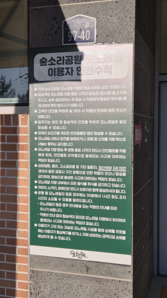 간단하게 모노레일 안전수칙이 적혀져 있으니 확인하시길 바랍니다.