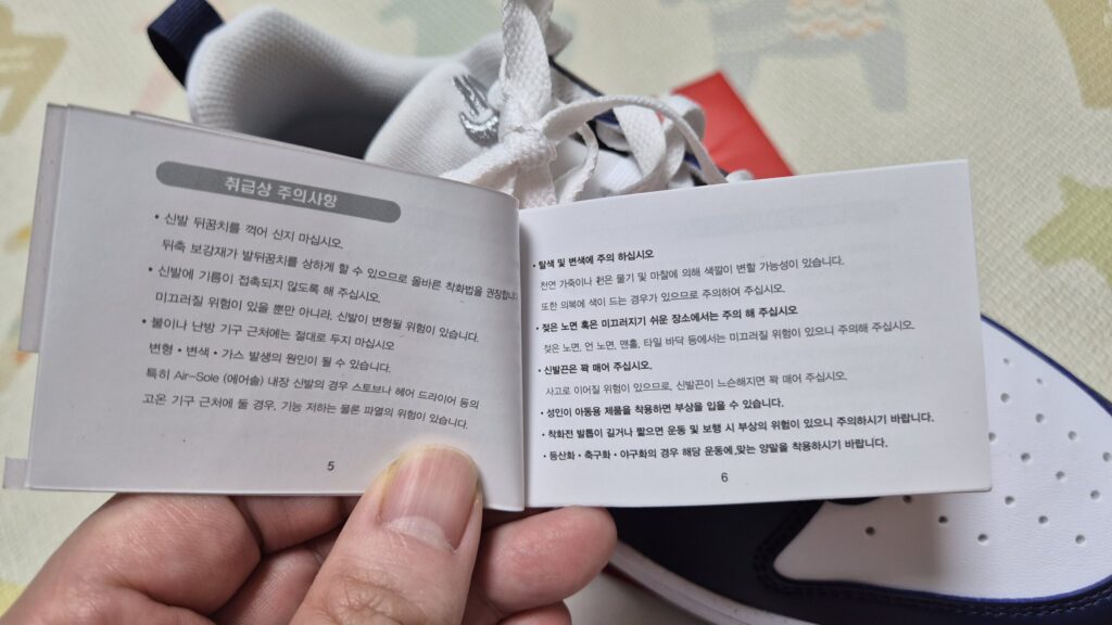 제가 구매한 키즈 운동화 취급시 주의사항에 관해서 아래사진을 보고 판단하시길 바랍니다.