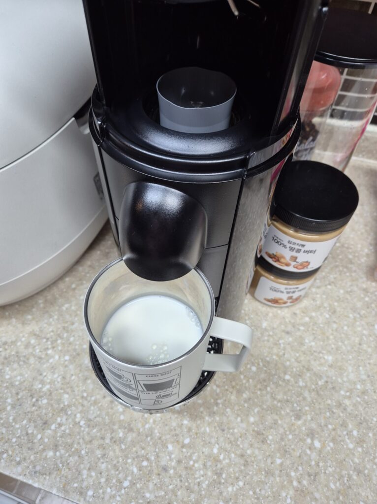 5. 캡슐 커피를 내립니다. 40ml 추출합니다. 알티시오 캡슐을 넣으면, 딱 40ml만 자동으로 뽑아냅니다.