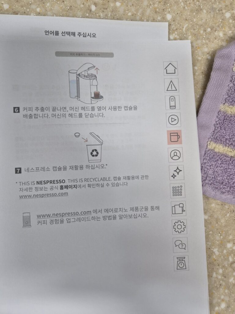 네스프레소 버츄오 플러스 커피 내리는법 메뉴얼