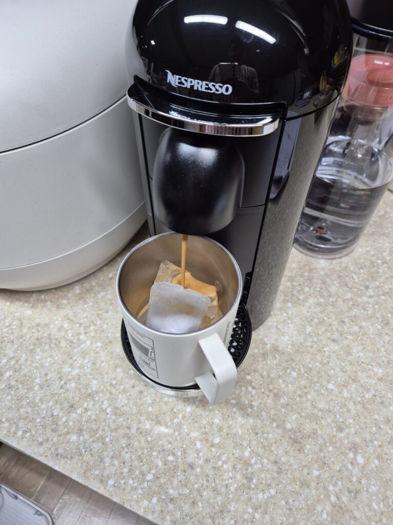 이제 캡슐 커피로 내린 인텐소 아이스 커피를 맛을 보도록 하겠습니다.