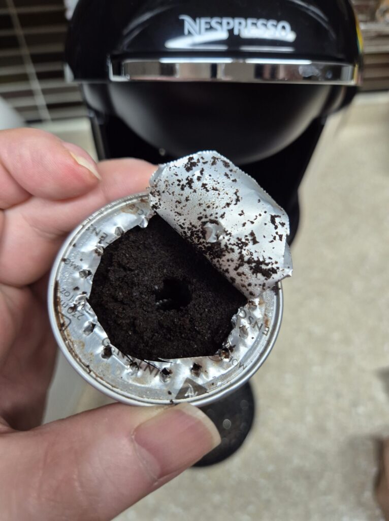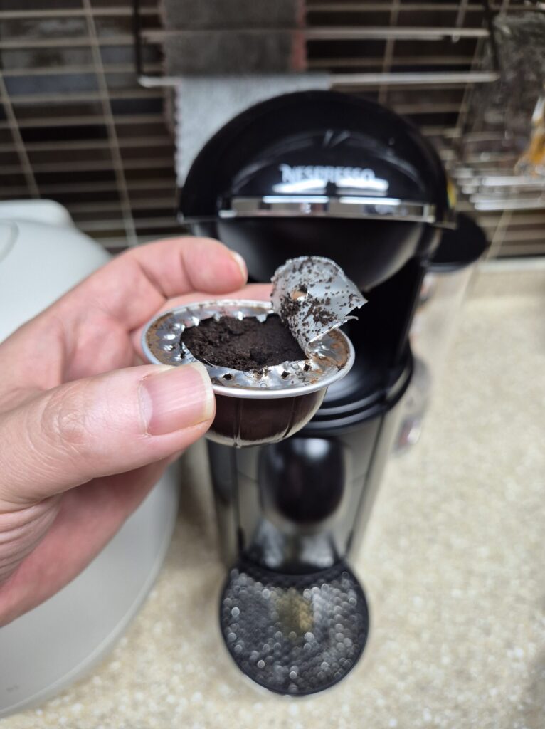 사용한 커피 캡슐은 이렇게 구멍이 뚫어져 있으며,