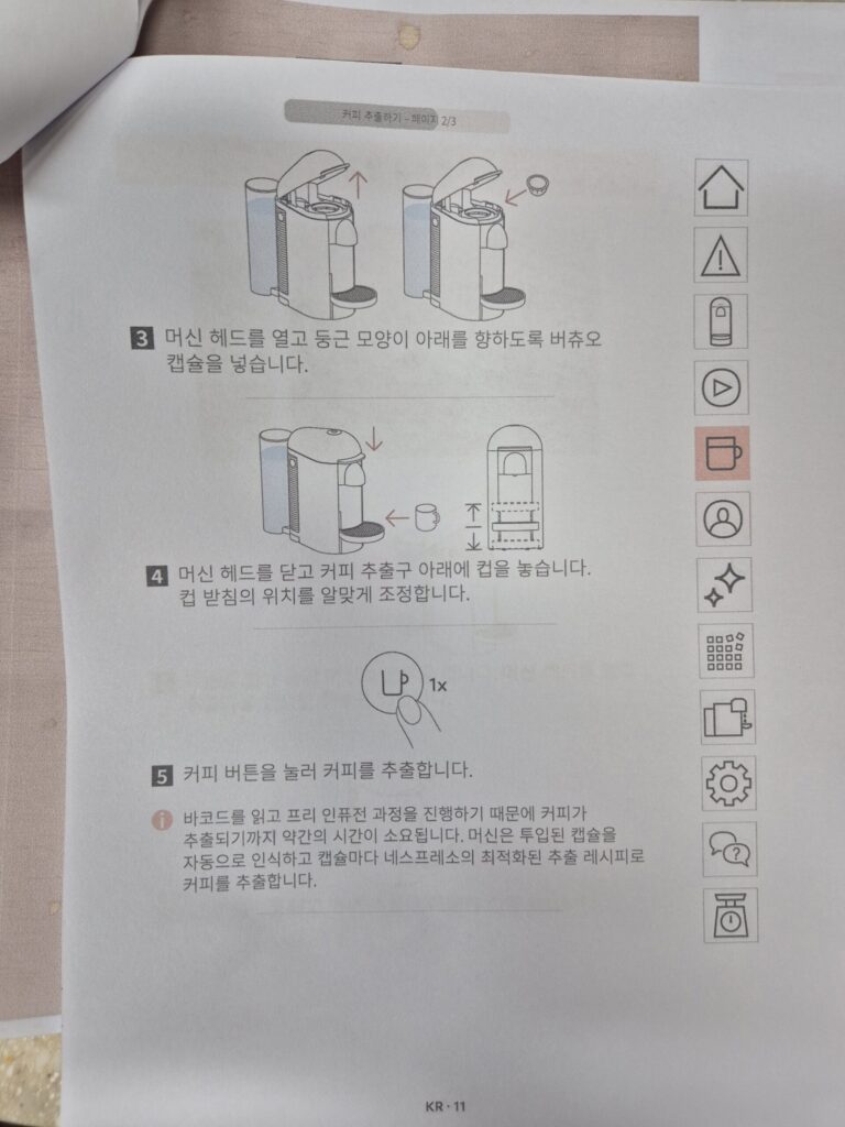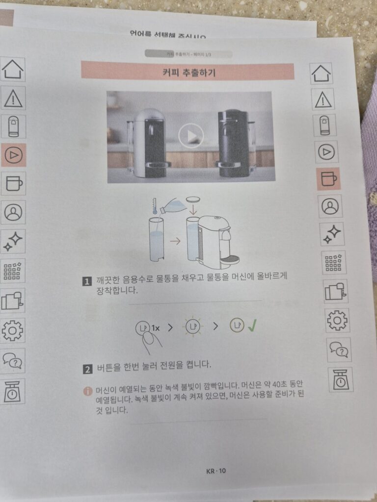 네스프레소 버츄오 플러스 커피 내리는법 메뉴얼