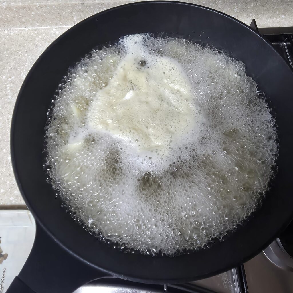 5. 수제비를 다 떼어서 넣었다면, 다시 센불로 올리고, 3분 정도 더 끓여준다.