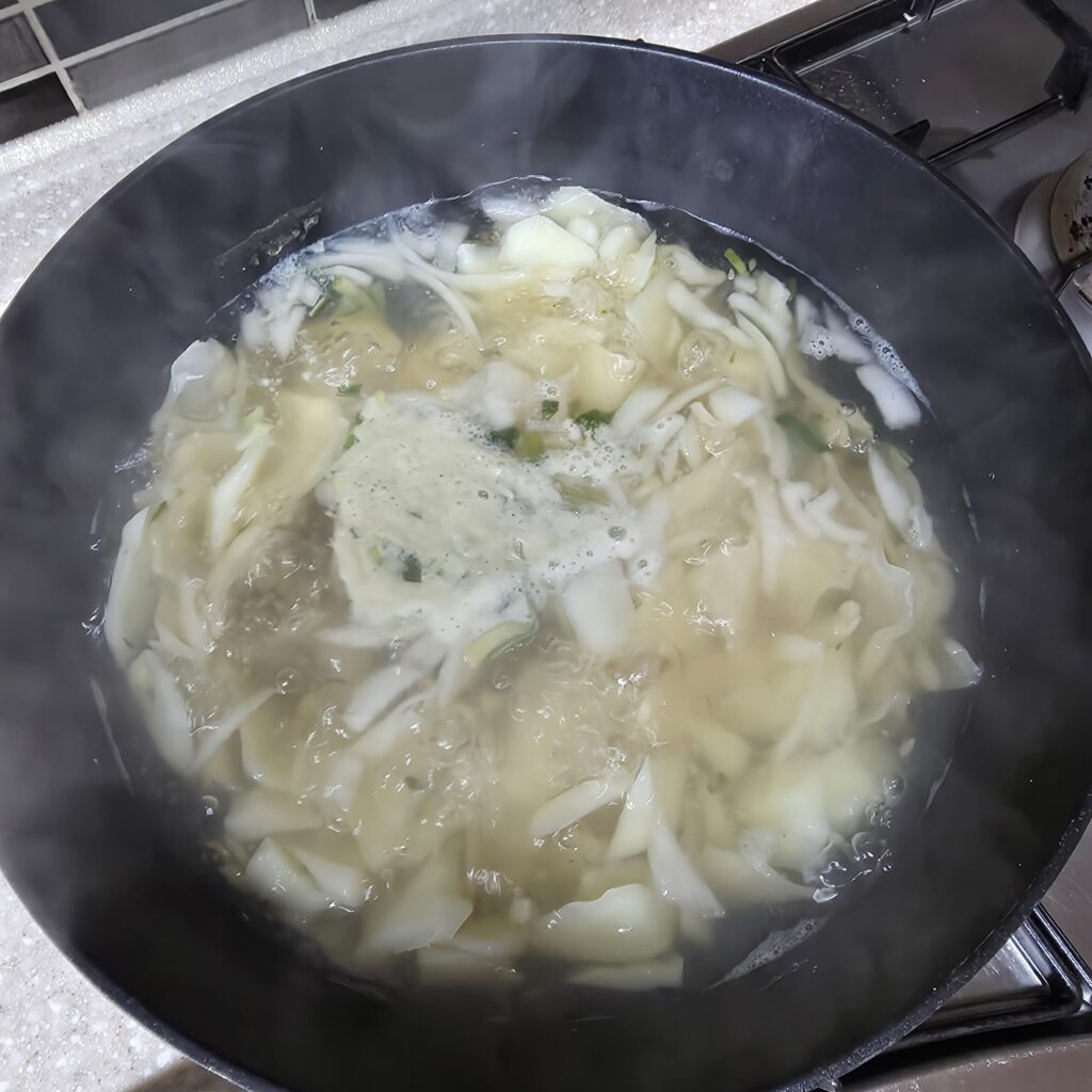 3. 국물이 끓기시작하면, 수제비와 건더기 스프를 넣는다