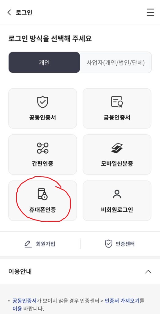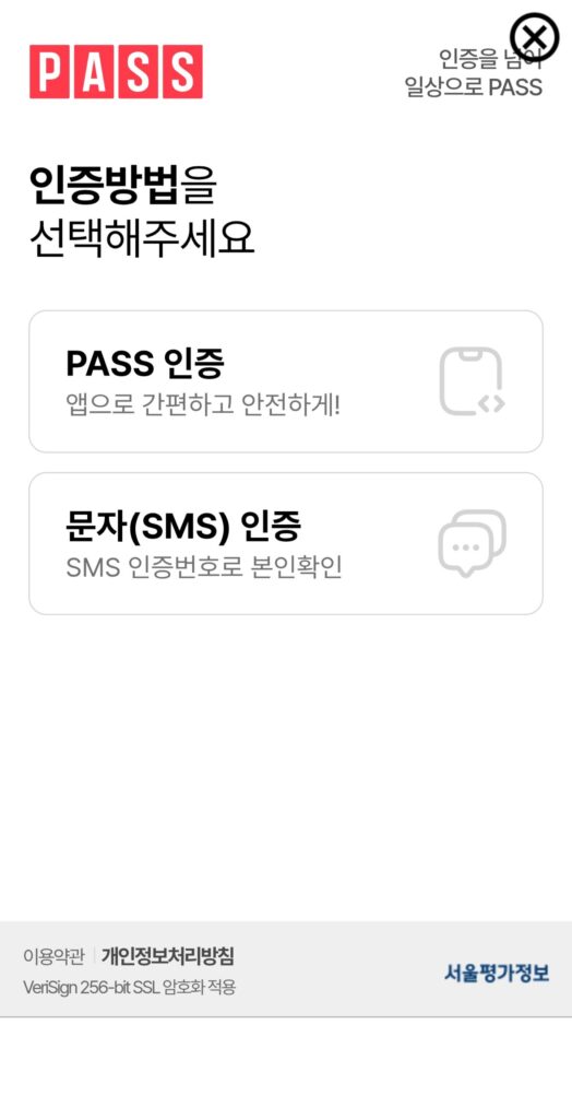 3. 로그인 할때 인증은 휴대폰 인증 PASS 앱 으로 편하게 하시면 됩니다.