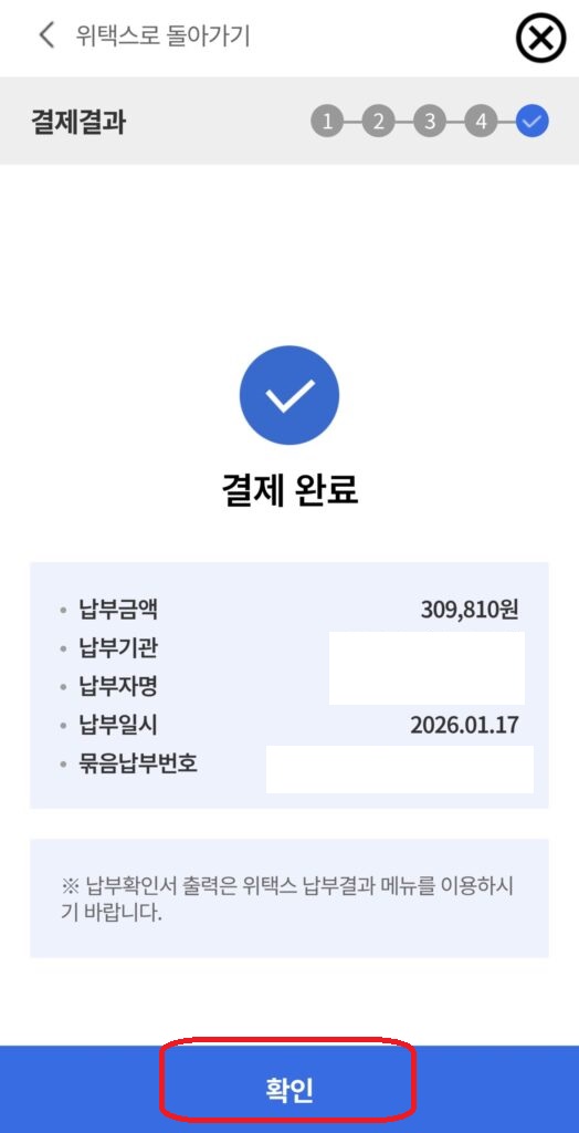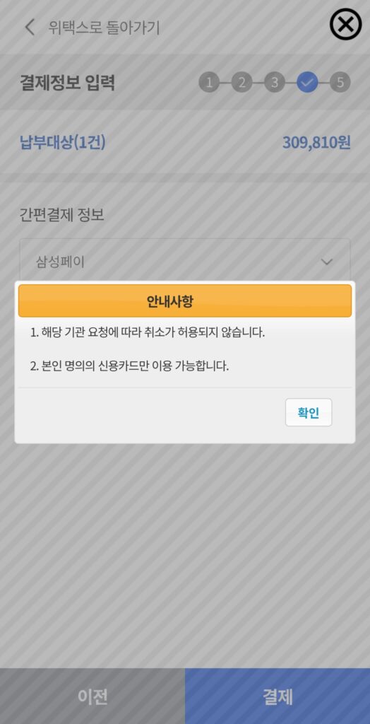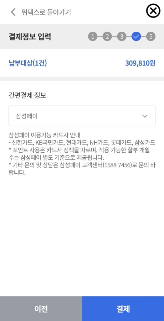괜히 힘들게 은행이나, ATM, 뱅킹 하지마시고, 편하게 위택스 앱으로 삼성페이를 통해서 결제 하시길 바랍니다.