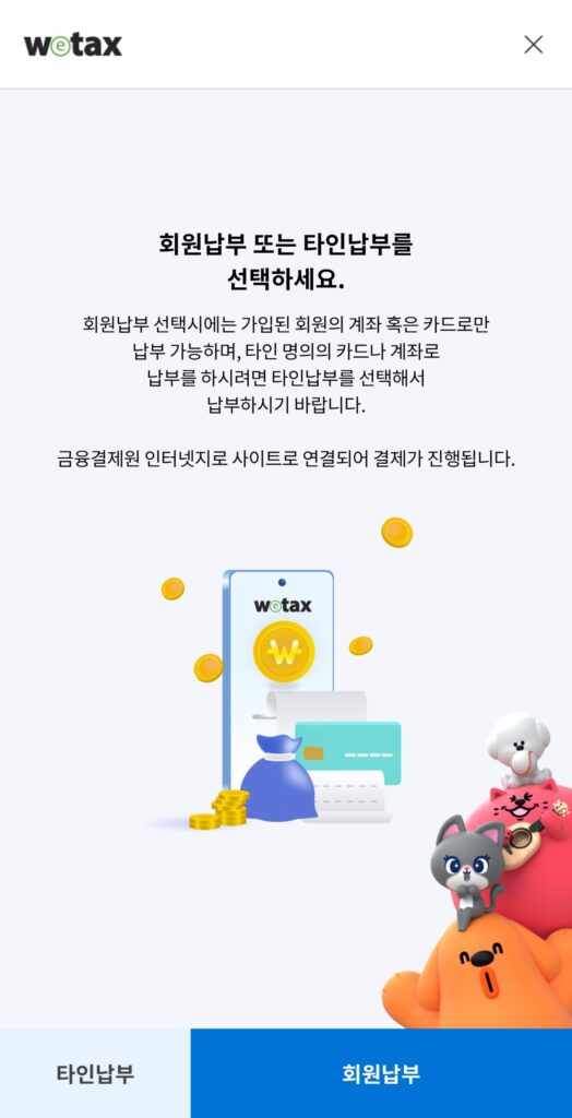 7. 본인 카드로 납부를하시면 “회원납부”를 선택하세요.