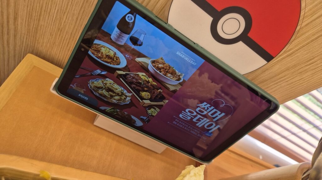 소주나 와인의 경우 키오스크를 통해서 따로 추가요금으로 주문을 하시면 됩니다.
