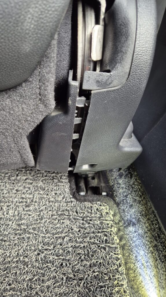 - -드라이버를 가지고, 시트 벨트 잠김부분 홀에 꾹 찔러넣어서 벨트를 분리한다.