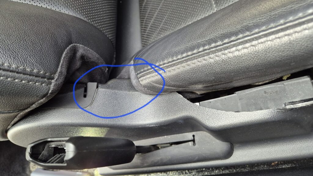 1열 시트 운전석은 왼쪽, 보조석은 오른쪽 오토 무빙 버튼 위 쪽 플라스틱이 깨지는 현상입니다.