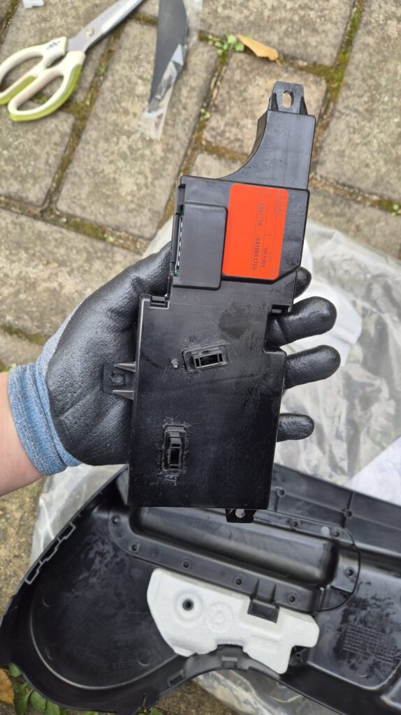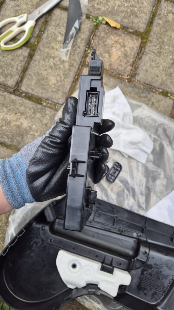 - 시트 안쪽 부분과 조립된 부분을 벌려서 분해한다. (이때 플라스틱 걸쇠 부분이 많이 부러짐)