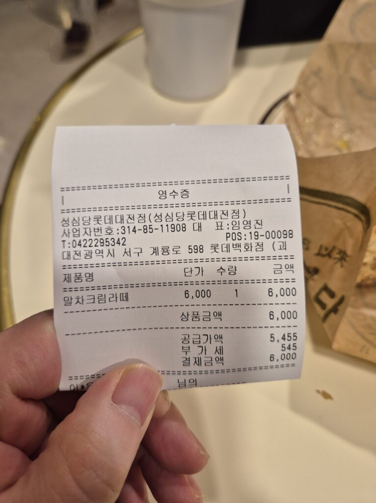 지하 1층 성심당 케익부띠끄 카페테리아에 빵 놓고, 커피나 말차 라떼를 주문해서 마시면 됨.