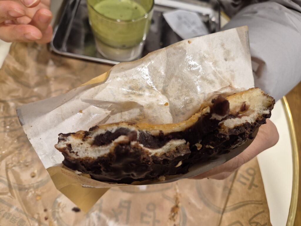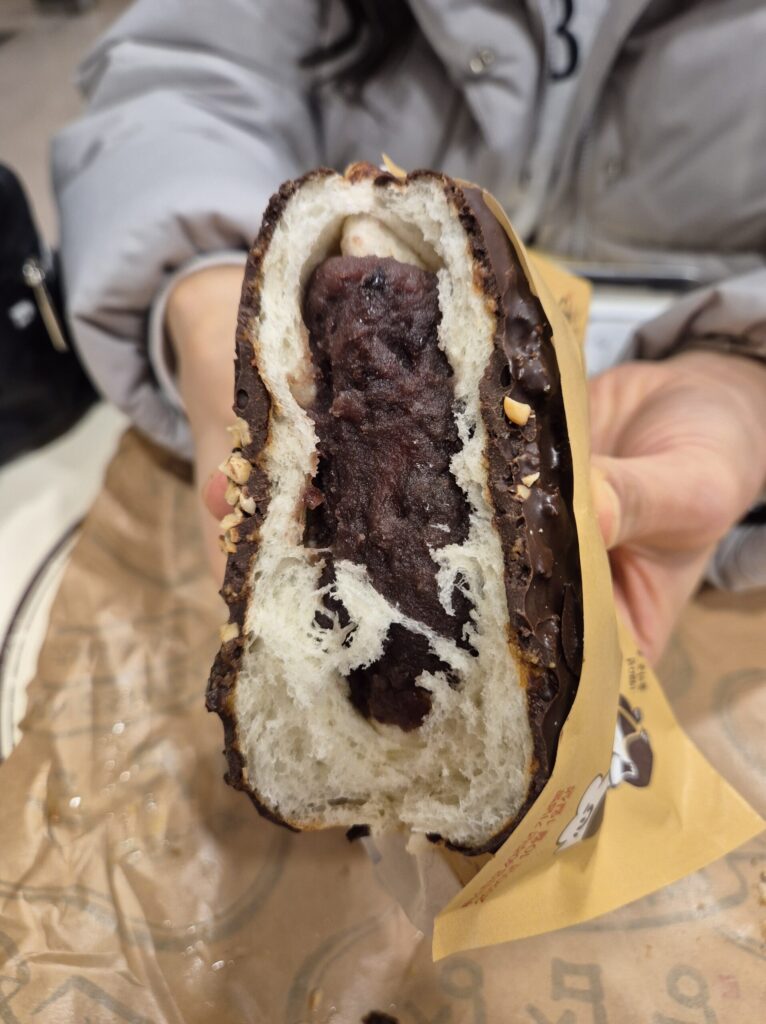 겉은 초코와 튀소의 바삭함이 어울어졌고, 속안에 팥역시  부드럽기때문에 맛이 기가 막힙니다.